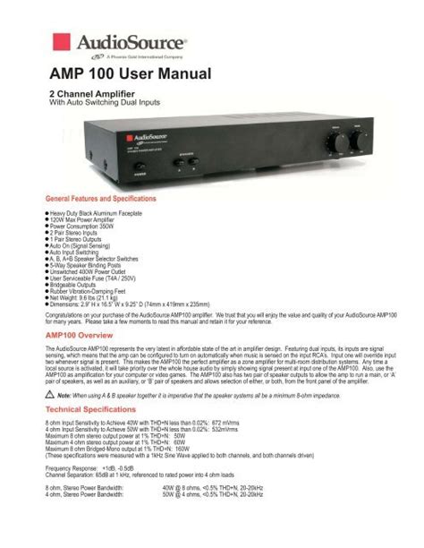 Congratulations on your purchase of the audiosource® amp 100. This manual comes under the category receivers and has been rated by 2 people with an average of a 7.7. Web amp 100 owner’s manual.
