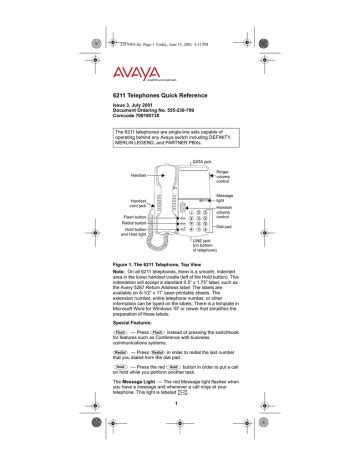 AVAYA DEFINITY 6211 TELEPHONE QUICK REFERENCE ManualsLib from www.manualslib.com
