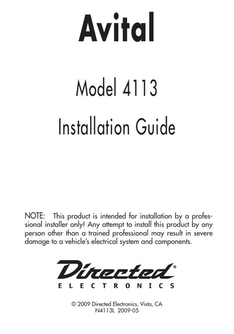 Any attempt to install this product by any person other than a. You do not have to print the entire manual avital 4113 but. Web model 4113 installation guide note: