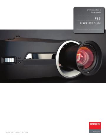 Web page 1 user manual user manual www.barco.com.; User manual, command reference manual, quick start manual. Projector barco f85 user manual 100 pages.