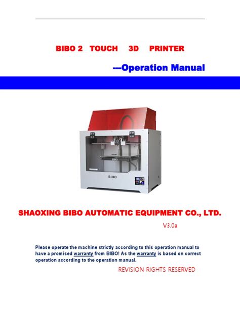 Bibo 3D Printer Manual. Web download 1 bibo touch(new board) 3d printer operation manual v3.0a28.pdf pdf for free. Online support is available but it is not dependable 24/7;