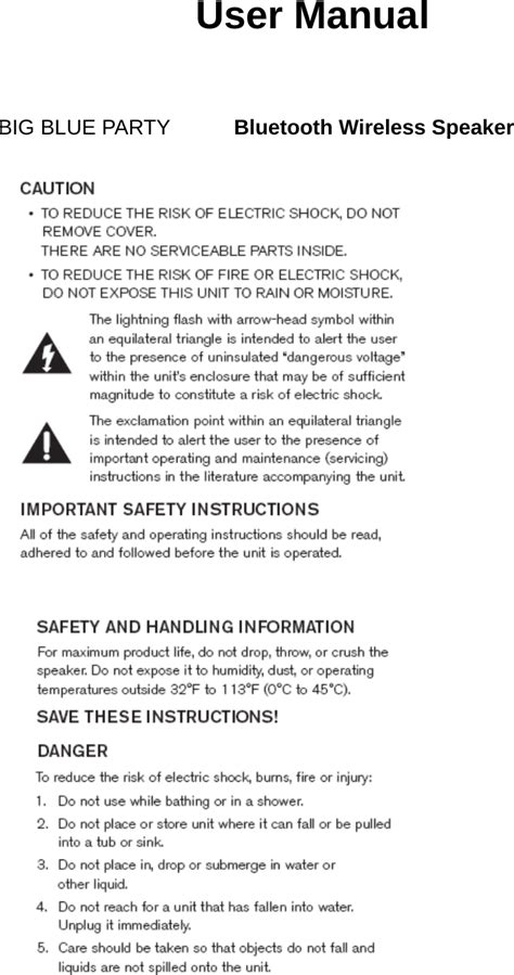 Web page 1 ’ big blue wireless speaker big blue audio is synonymous with wireless sound. Unplug this unit during lightning storms or when unused for long periods of time. Protect the power cord from.
