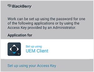 Install or update work apps; If prompted, allow the blackberry work app to use your location history to establish trusted locations. Install blackberry work and activate using an access key, activation password, or qr code;.