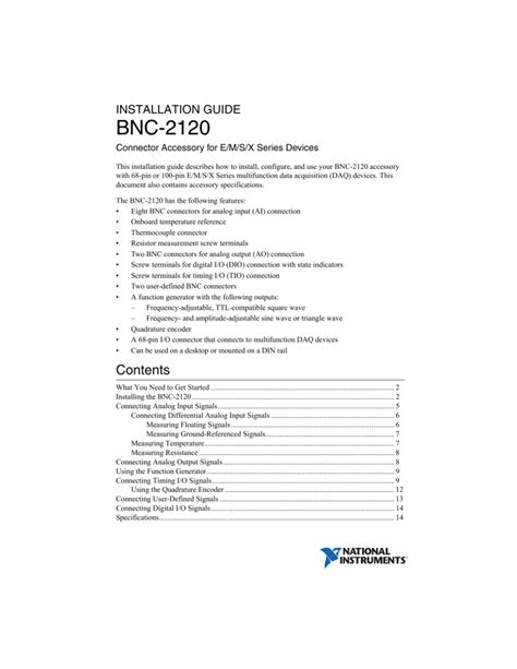 Bnc 2120 Installation Guide. Download add this document to collection(s) you can add this document to your study collection(s) sign in available only to authorized users title. Web connect the field signals to the bnc connectors and/or digital screw terminal plugs.