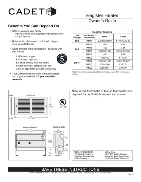 We have 2 cadet the register plus rm151 manuals available for free pdf download: This way you’ll save time on finding. Web cadet rm151 electric heater user manual.